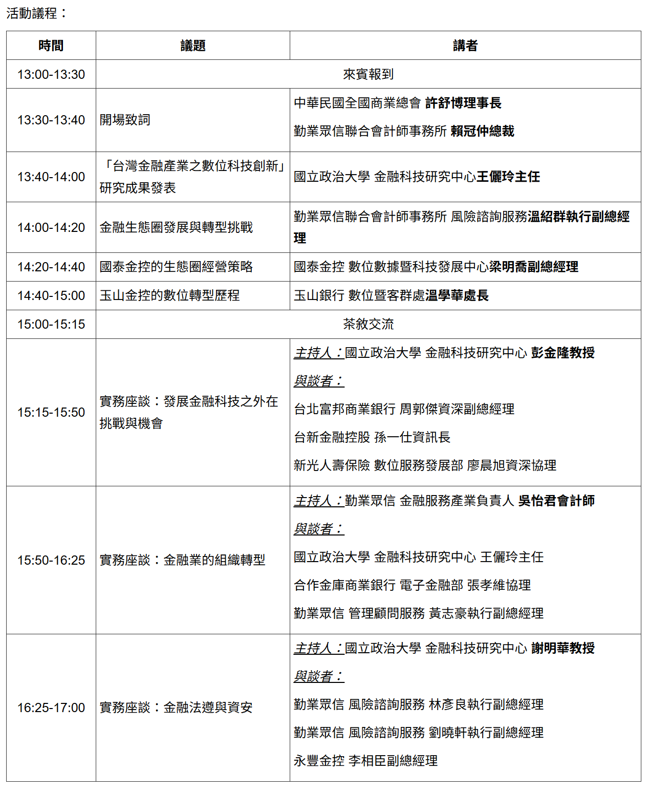 主辦單位:勤業眾信聯合會計師事務所、政治大學金融科技研究中心、政治大學國際產學聯盟