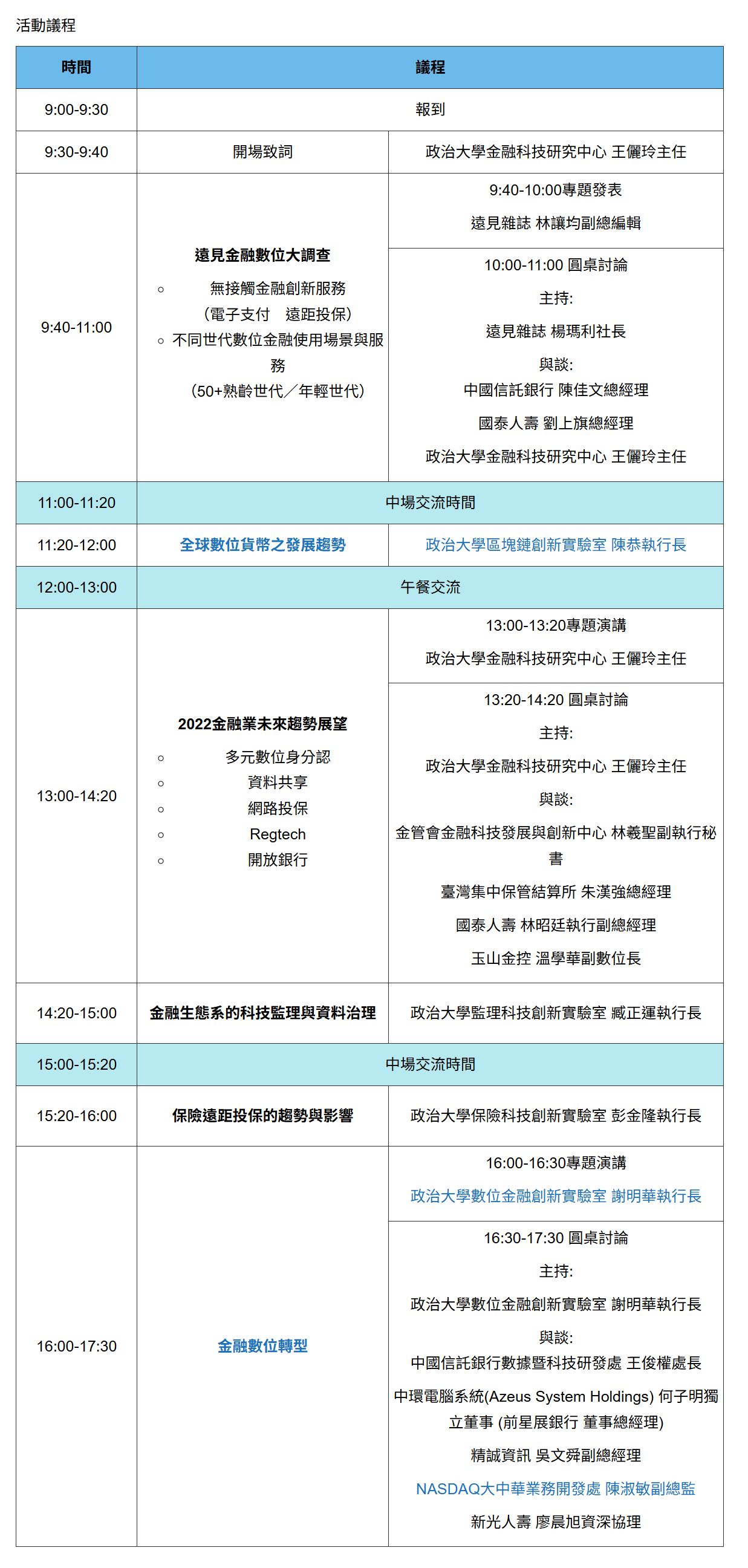 另外,對未來趨勢展望部分,邀請金管會金融科技發展與創新中心林羲聖副執行秘書、國泰人壽林昭廷執行副總經理、臺灣集保結算所朱漢強總經理、玉山金控溫學華副數位長等代表剖析2022年金融業政策推動方向及重點發展項目。